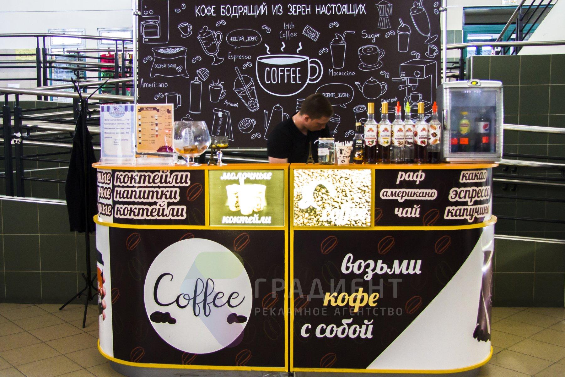 В отличие от стационарной кофейни, мобильная палатка не требует дорогостоящей рекламы. Все что нужно – это эстетично, красиво и ярко оформить вывеску, которая будет привлекать внимание мимо проходящих людей.