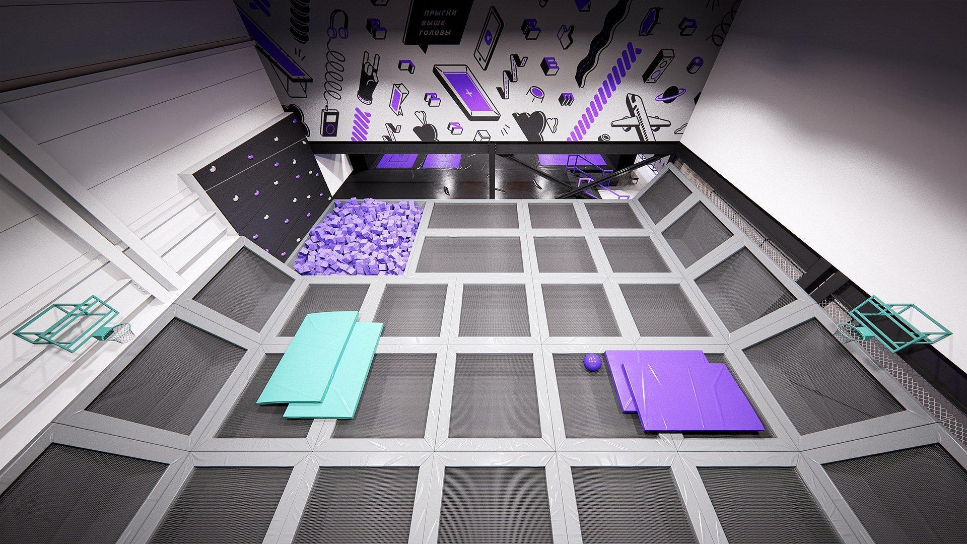 На территории площадью 5600 кв. м смонтированы десятки батутов, соединенных в единое игровое пространство. Пружинящее полотно позволяет совершать прыжки и акробатические трюки, забывая о законах гравитации.