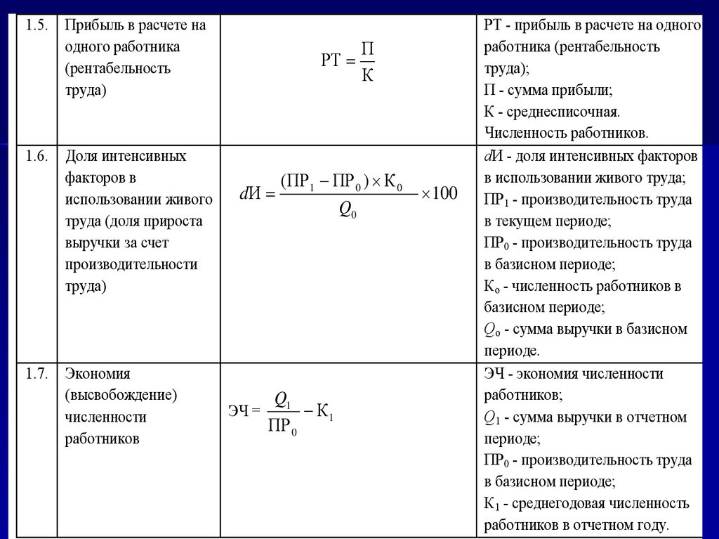 УПРАВЛЕНИЕ → Формулы расчета