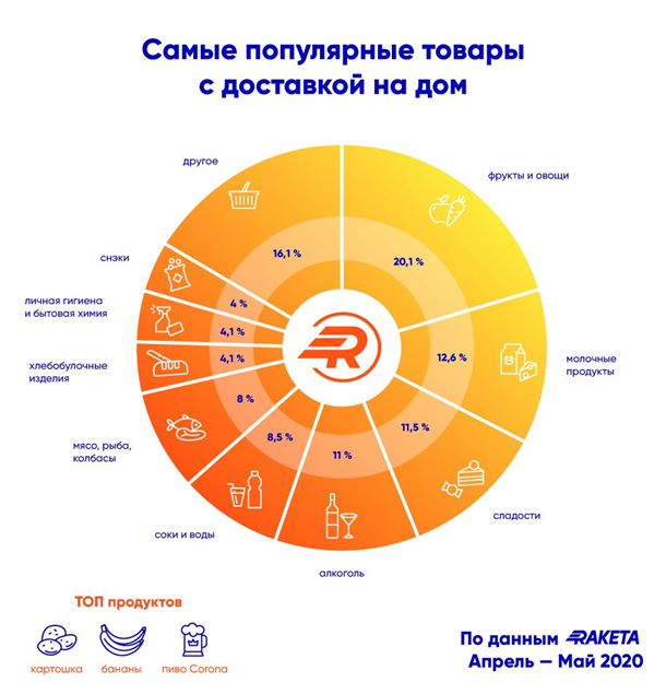 Мороженое с мая по август держится на втором месте среди покупок. Причем мороженое также остается востребованным и в холодные сезоны, кроме декабря.